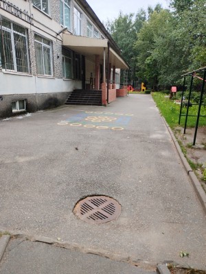 У калитки-входа на территорию детского сада имеется информационная табличка. После входа в калитку, идти направо до входа в здание детского сада.